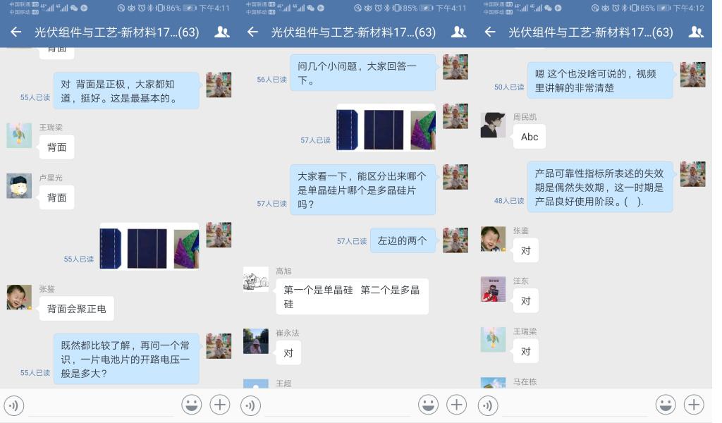 新能源科学与工程系教师王殿明通过与员工进行反馈测试,最终确定了“超星平台+QQ群”的授课方式,把提前录制好的教学视频上传至超星平台,同时利用QQ群完成与员工的互动答疑;完成授课测试的还有应用化学系教师刘瑾,她把课程资源和自己录制的视频教学资料提前发给员工,再利用企业微信群完成互动沟通;新能源材料与器件系教师宋世巍经过对3门课程的反复测试,最终确定以采取企业微信会议的方式完成网络教学。