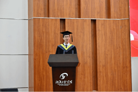 毕业生代表,新能源192班严威同学发言,感谢母校和老师们的教育培养,将铭记“明德致知、精工博学”的校训,心怀感恩,励志进取,在为服务国家现代化建设和谱写赋能美丽中国的绿色答卷中实现报国梦想。