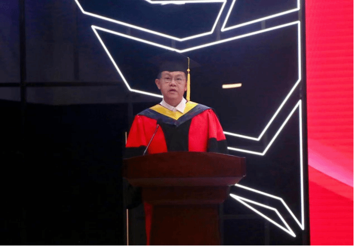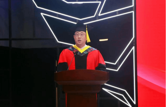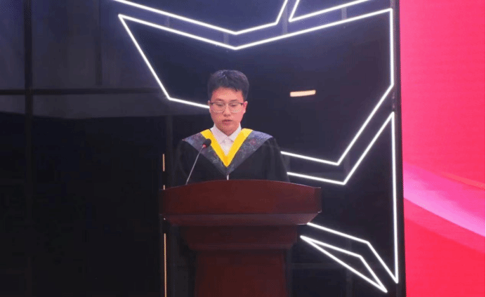 毕业生代表,新能源202班郭红伟同学发言,感谢母校和老师们的教育培养,将铭记“明德致知、精工博学”的校训,心怀感恩,励志进取,为社会做出自己的贡献,成为一名积极践行绿色低碳理念,又红又专又实的高级应用型专门人才。