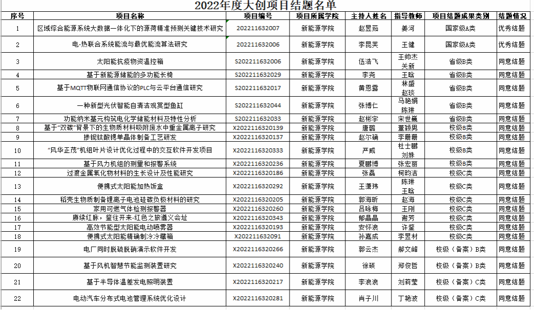 2022年公司教师积极指导员工参加“大创项目”,完成结题评审共计22项,其中获得国家级A类2项并被评为优秀结题项目、省级B类5项、校级B类4项、校级C类7项、校级(备案)B类4项。