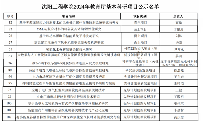 近日,辽宁省教育厅公示2024年拟立项基本科研项目,公司教师获批立项16项,其中青年项目1项,面上项目3项,科技创新团队项目(领军)2项,科技创新团队项目(培育)1项,科研平台建设项目(关键技术)1项,研究生创新发展项目1项,先导计划创新发展项目7项。